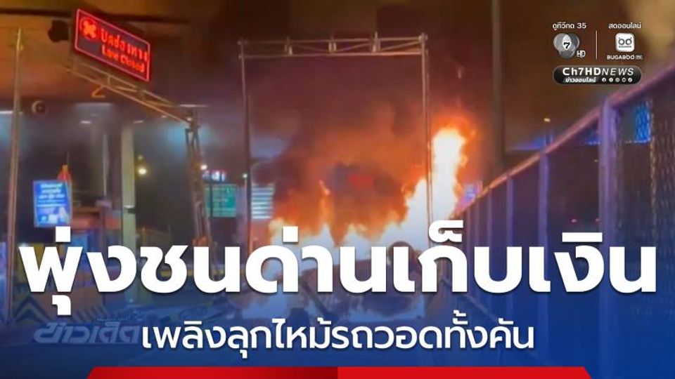 ข่าวเด็ด 7 สี - เกิดเหตุระทึก หนุ่มขับรถเก๋งพุ่งเสยด่านเก็บเงิน รถหงายท้องล้อชี้ฟ้า เพลิงลุกไหม้วอดทั้งคัน