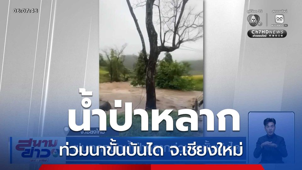 สนามข่าวเสาร์-อาทิตย์ - หลายพื้นที่เกิดฝนตกหนัก ไปที่จังหวัดเชียงใหม่ สถานการณ์ฝนที่ตกลงมาอย่างหนัก ทำให้เกิดน้ำป่าจากดอยอินทนนท์หลากท่วมนาขั้นบันไดบ้านแม่กลางหลวง