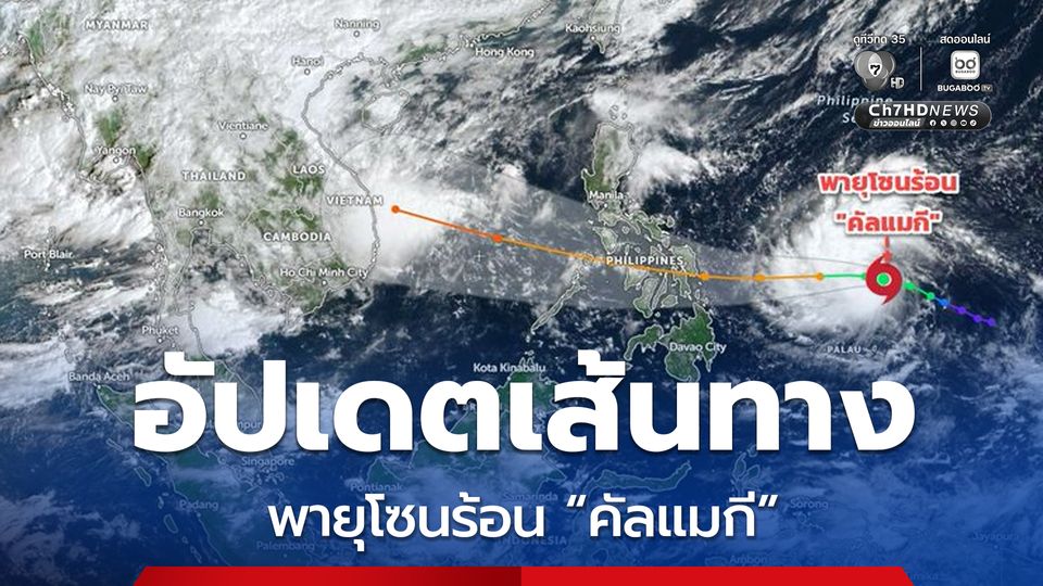 อัปเดตเส้นทางพายุในมหาสมุทรแปซิฟิก เช้าวันนี้ (2 พ.ย.68) พายุโซนร้อน "คัลแมกี (KALMAEGI)" ในมหาสมุทรแปซิฟิกตะวันตก (ทางตะวันออกของประเทศฟิลิปปินส์) กำลังเคลื่อนตัวทางตะวันตกที่คาดว่าจะเคลื่อนผ่านตอนกลางประเทศฟิลิปปินส์ ลงสู่ทะเลจีนใต้ และในช่วง 6-8 พ.ย.68 จะเคลื่อนตัวเข้าใกล้ฝั่งประเทศเวียดนาม แต่เมื่อพายุมาปะทะอากาศเย็น จะอ่อนกำลังลงอย่างรวดเร็ว ยังต้องติดตามเป็นระยะๆ เนื่องจากทิศทางและกำลังพายุ ยังเปลี่ยนแปลง