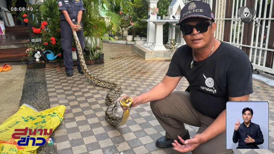 เจ้าหน้าที่กู้ภัยเริ่มแผน ใช้บ่วงคล้องหัวงูเหลือม แต่ฤทธิ์เยอะตามสัญชาตญาณเผยความดุร้าย ชูคอสู้กลับเจ้าหน้าที่หลายครั้ง แต่สุดท้ายสามารถสยบงูเหลือมดังกล่าวไว้ได้ จับยัดใส่กระสอบ เจ้าหน้าที่บอกว่าจะนำไปปล่อยคืนสู่ป่าห่างไกล ก็หวังว่าจะไม่หวนกลับมาก่อเหตุซ้ำอีก
