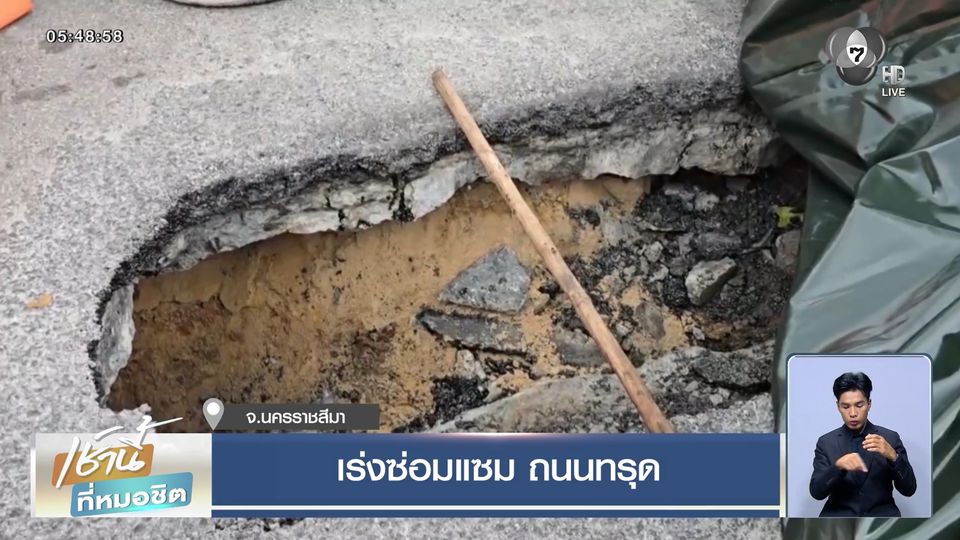 เช้านี้ที่หมอชิต - ตามต่อกรณีเกิดเหตุถนนทรุดตัว เป็นวงกว้างกลางเมืองนครราชสีมา เจ้าหน้าที่เผยสาเหตุคาดว่าน้ำกัดเซาะพื้นใต้ถนน ทำให้เกิดโพรงขนาดใหญ่