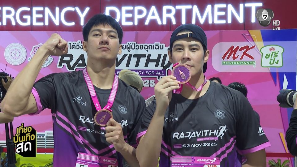 เที่ยงบันเทิงสด - ตาม 2 หนุ่ม เบน สันติราษฎร์ และ ทศ รวิศชา ไปวิ่งเพื่อสุขภาพพร้อมได้บุญในงาน เดินวิ่งการกุศลเฉลิมพระเกียรติฯ "Rajavithi Run For Life, Emergency For All" จัดขึ้นเพื่อสมทบทุนสร้างอาคารอุบัติเหตุและฉุกเฉิน โรงพยาบาลราชวิถี