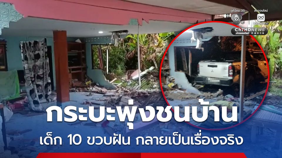 กระบะหลุดโค้งพุ่งชนบ้าน เด็ก 10 ขวบ นอนอยู่บาดเจ็บเล็กน้อย เล่าความฝันก่อนกลายเป็นเรื่องจริง