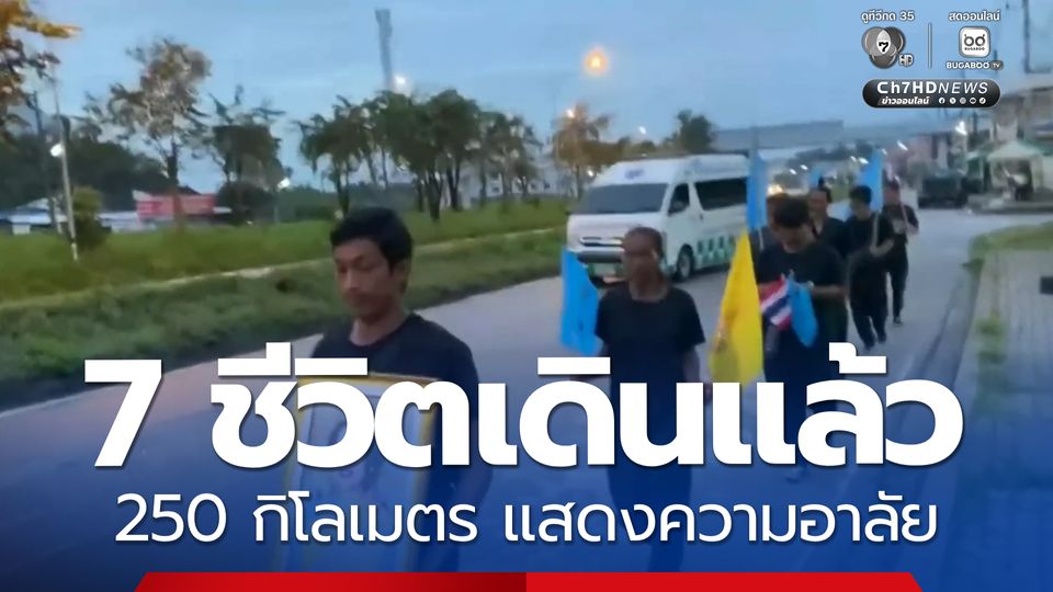 ข่าวเย็นประเด็นร้อน - พสกนิกร 7 ชีวิต ร่วมเดินเท้ากว่า 250 กิโลเมตร เข้าสู่จังหวัดประจวบคีรีขันธ์ เพื่อแสดงความอาลัยถวายแด่ สมเด็จพระนางเจ้าสิริกิติ์ พระบรมราชินีนาถ พระบรมราชชนนีพันปีหลวง