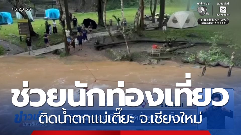 เหตุการณ์ระทึก กลางอุทยานแห่งชาติออบหลวง ฝนที่ตกหนักติดต่อกันตั้งแต่เมื่อวานส่งผลให้เช้านี้เกิดน้ำป่าหลากบริเวณ น้ำตกแม่เตี๊ยะ อำเภอจอมทอง จังหวัดเชียงใหม่ ทำเอานักท่องเที่ยวที่ไปกางเต็นท์รับลมหนาววันหยุดเปลี่ยนเป็นผู้ประสบภัย จำนวน 25 คน