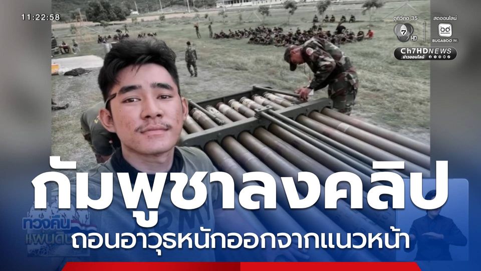 ห้องข่าวภาคเที่ยง - แม้กัมพูชาตกลงที่จะถอนอาวุธหนัก ออกจากพื้นที่ชายแดน โดยแบ่งเป็น 3 ระยะ เริ่มจากระบบจรวด ตามด้วยปืนใหญ่ จากนั้นจึงเป็นรถถังและยานเกราะอื่น ๆ ล่าสุดเพจ Army Military Force นำคลิปภาพทหารกัมพูชา นำอาวุธสงคราม มาปักหลักอยู่แนวหน้า