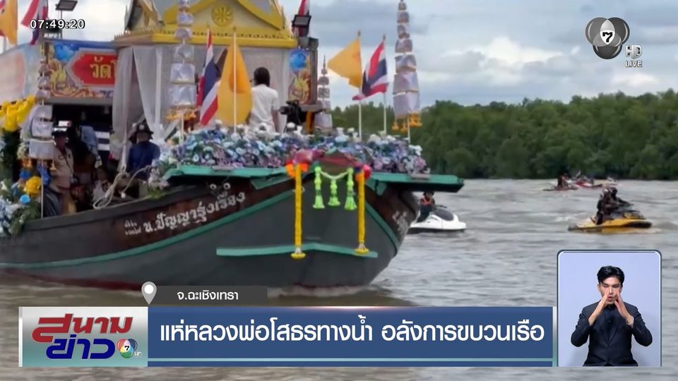 สนามข่าว 7 สี - ที่จังหวัดฉะเชิงเทรา ไปดูประเพณีแห่องค์หลวงพ่อพุทธโสธรทางน้ำ ปีที่ 135 ด้วยขบวนเรือที่ตกแต่งอย่างสวยงามล่องไปตามลำน้ำบางปะกง เพื่อให้ประชาชนตามสองฝั่งแม่น้ำได้สักการบูชาและขอพร
