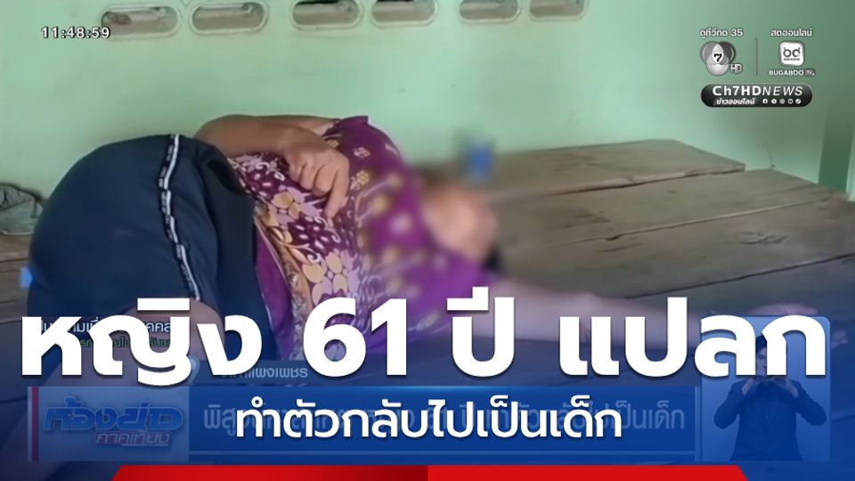 คลิปภาพพฤติกรรมแปลก ๆ ของ นางปาน อายุ 61 ปี ภรรยาของนายวิมล ที่บ้านหลังหนึ่ง ในตำบลวังทอง อำเภอเมืองกำแพงเพชร จังหวัดกำแพงเพชร นอนกินขนมอยู่บนเตียงหน้าบ้าน มีพฤติกรรมคล้ายว่ากลับไปเป็นเด็กอีกครั้ง