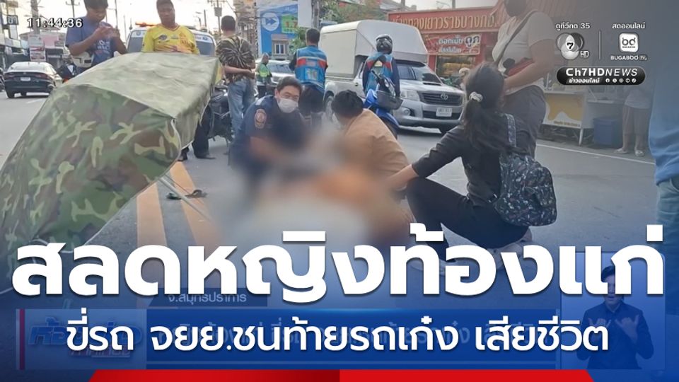 หญิงท้องแก่ ขี่รถ จยย.ชนท้ายรถเก๋ง เสียชีวิต จ.สมุทรปราการ