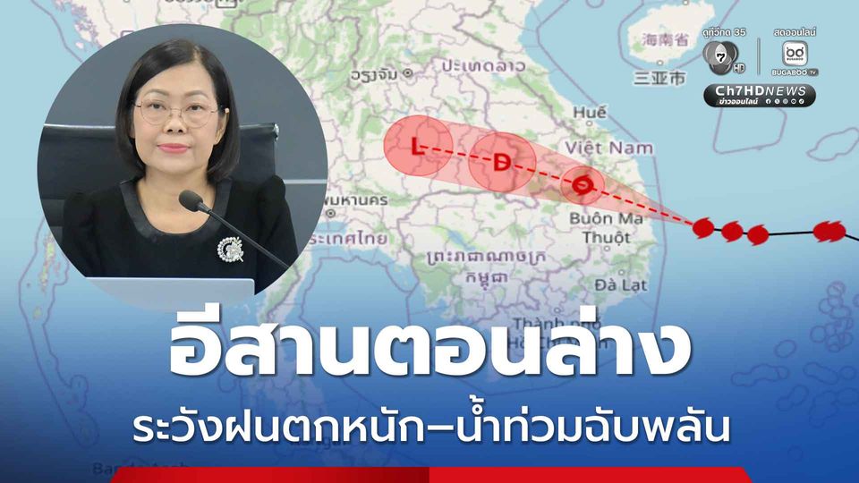 กรมอุตุนิยมวิทยา แถลงสถานการณ์พายุไต้ฝุ่น “คัลแมกี” เตือนพื้นที่อีสานตอนล่าง ระวังฝนตกหนัก น้ำท่วมฉับพลัน ระหว่าง 7–9 พฤศจิกายนนี้