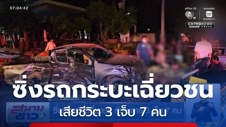 สนามข่าว 7 สี - รถกระบะ 2 คัน ขับมาด้วยความเร็ว ก่อนเฉี่ยวชนรถจักรยานยนต์ ก่อนเสียหลักพุ่งเข้าชนคนงาน ที่กำลังเร่งมือทำงานก่อสร้างขยายถนน ได้รับบาดเจ็บ