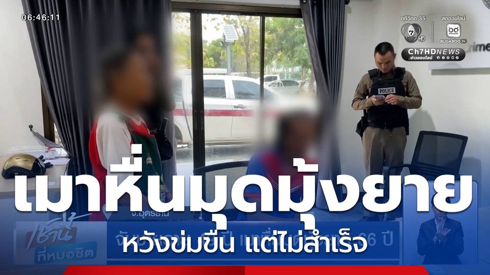 เช้านี้ที่หมอชิต - ชายอายุ 49 ปี เมาสุราสะกิดยายอายุ 66 ปี ขอมีเพศสัมพันธ์ด้วย ก่อนพยายามมุดมุ้งเข้าไปข่มขืน แต่ไม่สำเร็จ