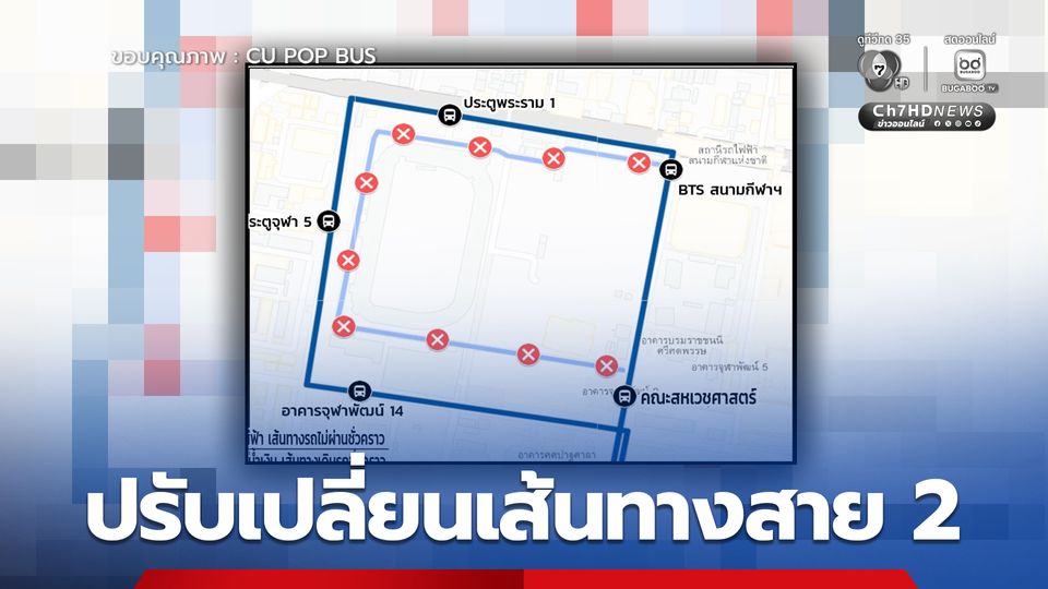 วันนี้ (8 พ.ย. 68) เพจ CU POP BUS ได้โพสต์อัปเดตปรับเปลี่ยนเส้นทางสาย 2 เนื่องด้วยการจัดฟุตบอล 7 คน แชมป์กีฬา 7 สี บริเวณโดยรอบสนามกีฬาแห่งชาติ เพื่อความสะดวกในการใช้บริการ รถสาย 2 มีความจำเป็นต้องปรับเส้นทางดังนี้