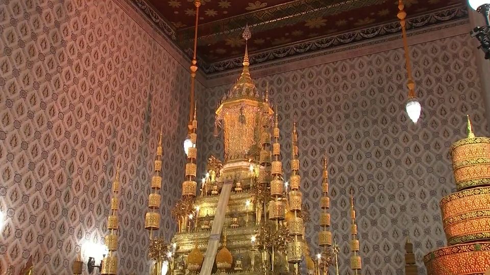 ต่อจากนั้น พระบาทสมเด็จพระเจ้าอยู่หัว ทรงจุดธูปเทียนเครื่องนมัสการพานทองสองชั้นบูชาพระพุทธรูปประจำพระชนมวาร สมเด็จพระนางเจ้าสิริกิติ์ พระบรมราชินีนาถ พระบรมราชชนนีพันปีหลวง ที่หน้าพระแท่นพระนพปฎลมหาเศวตฉัตร