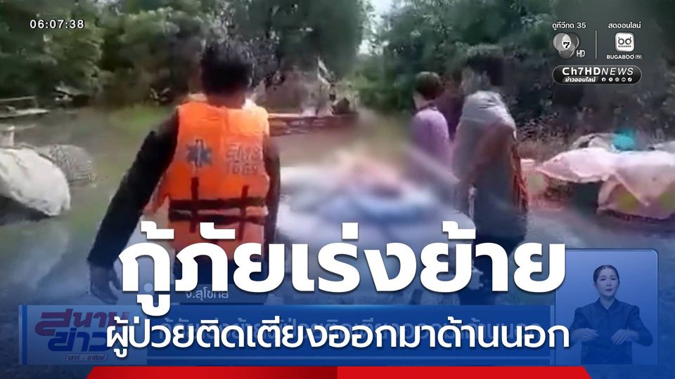 สนามข่าวเสาร์-อาทิตย์ - สถานการณ์น้ำท่วมภาคเหนือยังไม่คลี่คลาย หลายพื้นที่ต้องอพยพผู้ป่วยติดเตียงออกมา เนื่องจากระดับน้ำไม่มีทีท่าจะลดลง