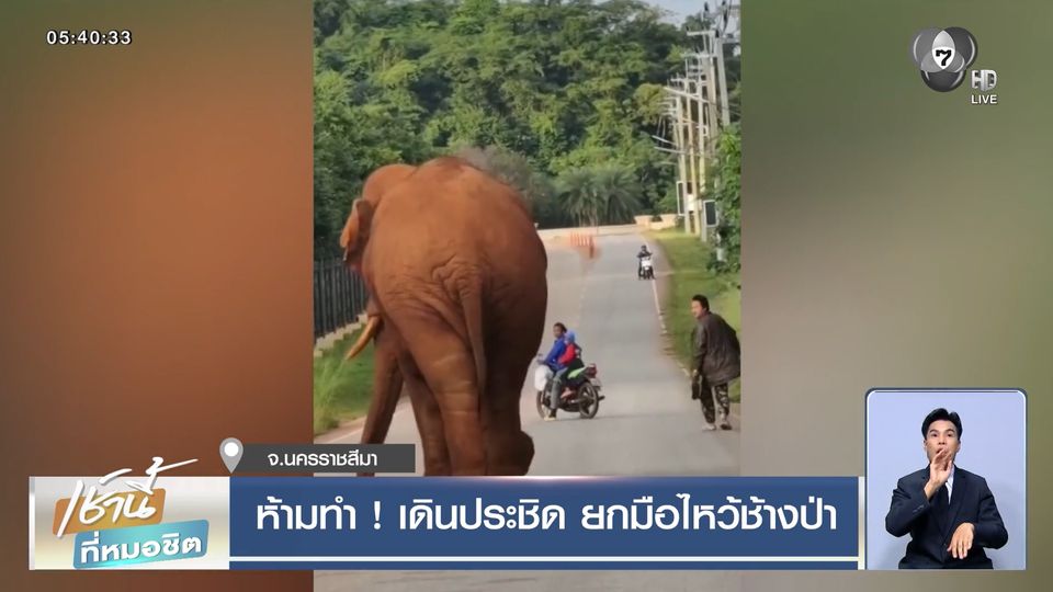 เช้านี้ที่หมอชิต - พฤติกรรมแบบนี้ห้ามทำเด็ดขาด ไม่รู้ว่าชายคนนี้คิดอะไร เดินเข้าไปหาช้างป่าที่เดินกลางถนนแล้วยกมือไหว้ ท่ามกลางเสียงตะโกนห้ามของญาติ