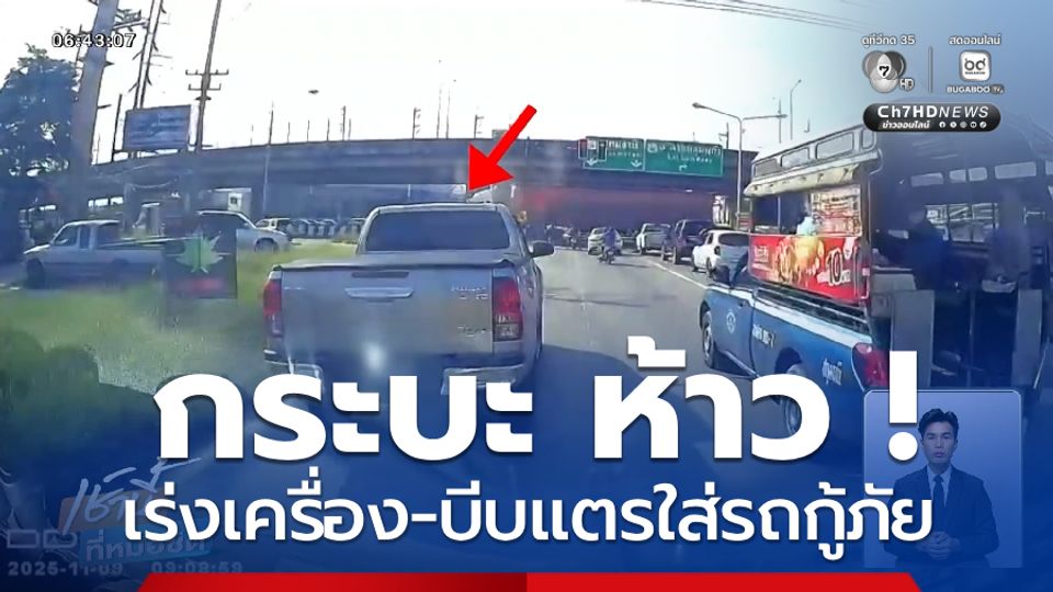 เช้านี้ที่หมอชิต - คนขับรถกระบะเร่งเครื่องขับจี้ท้าย บีบแตร เหยียบเบรกใส่รถกู้ภัย ขณะนำผู้ป่วยส่งโรงพยาบาล