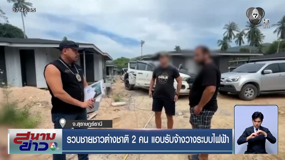 สนามข่าว 7 สี - ตำรวจเดินหน้ากวาดล้างชาวต่างชาติ ลักลอบรับงานติดตั้งระบบไฟฟ้าในไซต์ก่อสร้าง ตอนแรกปากแข็งไม่ยอมรับ แต่สุดท้ายต้องจำนนต่อหลักฐาน คอตก ยอมรับสารภาพว่าตระเวนรับงานมาแล้วหลายแห่ง