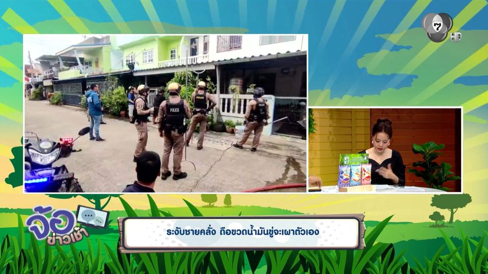 จ้อข่าวเช้า - ระงับชายคลั่ง ถือขวดน้ำมันขู่จะเผาตัวเอง