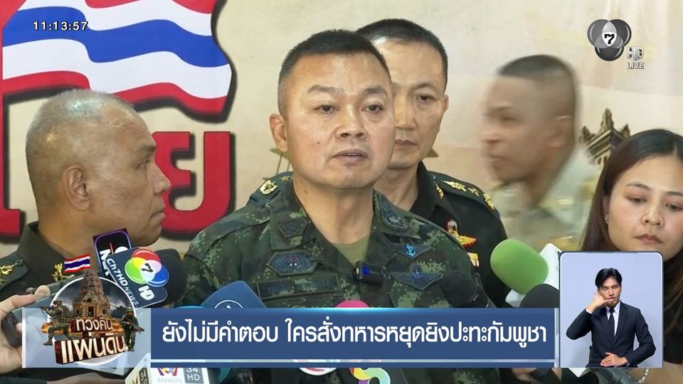 ห้องข่าวภาคเที่ยง - ยังไม่มีเสียงตอบกลับหรือชี้แจงใด ๆ หลัง แม่ทัพกุ้ง เปรย มีคนสั่งให้หยุดยิงวันปะทะกับกัมพูชา
