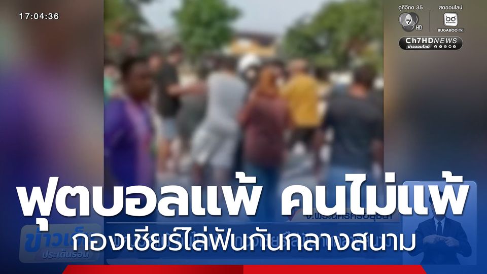 ข่าวเย็นประเด็นร้อน - ฟุตบอลเเพ้ แต่คนไม่เเพ้ ! ในงานเเข่งฟุตบอลเด็ก อายุไม่เกิน 11 ขวบ เดือดถึงขั้นกองเชียร์ยกพวกตีกันกลางสนามชั่วคราวในวัด ไล่ฟันไปถึงหน้าเมรุ