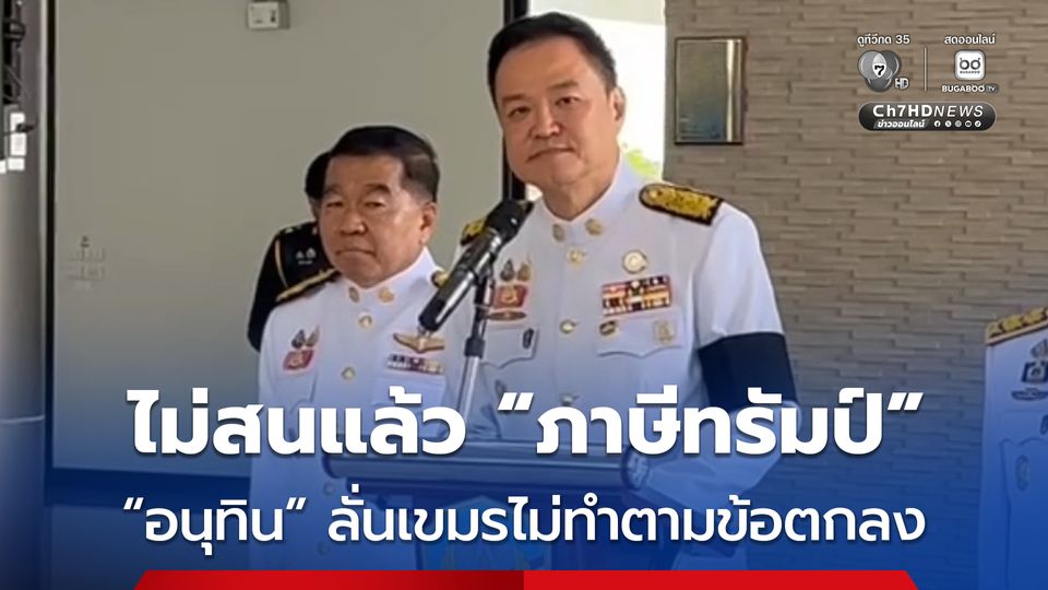"อนุทิน" ประกาศกร้าว กัมพูชาไม่ปฏิบัติตามข้อตกลงแล้วจะขอโอกาสกลับมานั่งเจรจาอีกคงไม่ได้ หากยกเลิก joint declaration แล้ว เมินข้อกังวล สหรัฐฯ ไม่พอใจ ใช้ “ภาษีทรัมป์” บีบไทย ลั่น ขายประเทศนี้ไม่ได้ ก็ต้องหาตลาดใหม่ ขายประเทศอื่น เราต้องอยู่ให้ได้