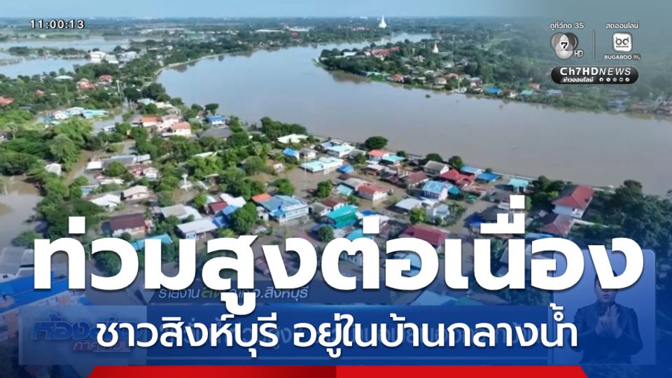 ห้องข่าวภาคเที่ยง - น้ำที่ท่วมสูงขึ้นต่อเนื่อง จากแนวคันกระสอบทรายที่กั้นแม่น้ำเจ้าพระยาแตก ยังไม่มีทีท่าว่าจะลดระดับลง ทำให้ชาวบ้านต้องอยู่กันกลางน้ำด้วยความยากลำบาก ติดตามจากคุณหนึ่ง อรรถพล ดวงจินดา รายงานสด จาก อำเภอพรหมบุรี จังหวัดสิงห์บุรี