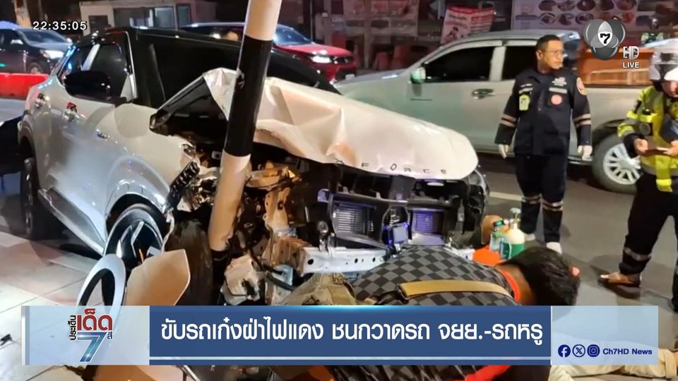 ประเด็นเด็ด 7 สี - คนขับหลับใน แต่รถไฟฟ้ายังถูกขับเคลื่อนด้วยระบบอัตโนมัติจึงขับฝ่าไฟแดง ก่อนชนกวาดรถจักรยานยนต์ และรถหรู เสียหายรวม 3 คัน