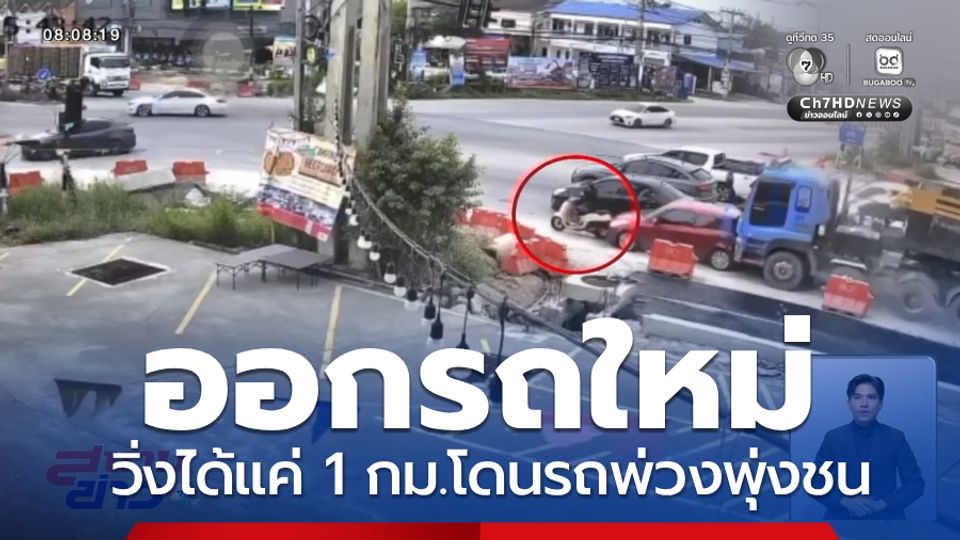 สนามข่าว 7 สี - รถบรรทุกพ่วงเบรกแตก พุ่งชนรถเก๋ง ไปชนรถจักรยานยนต์ป้ายแดง ที่เพิ่งออกจากศูนย์ วิ่งมาได้แค่ 1 กิโลเมตร จนได้รับความเสียหาย ไปชมภาพจากกล้องวงจรปิด