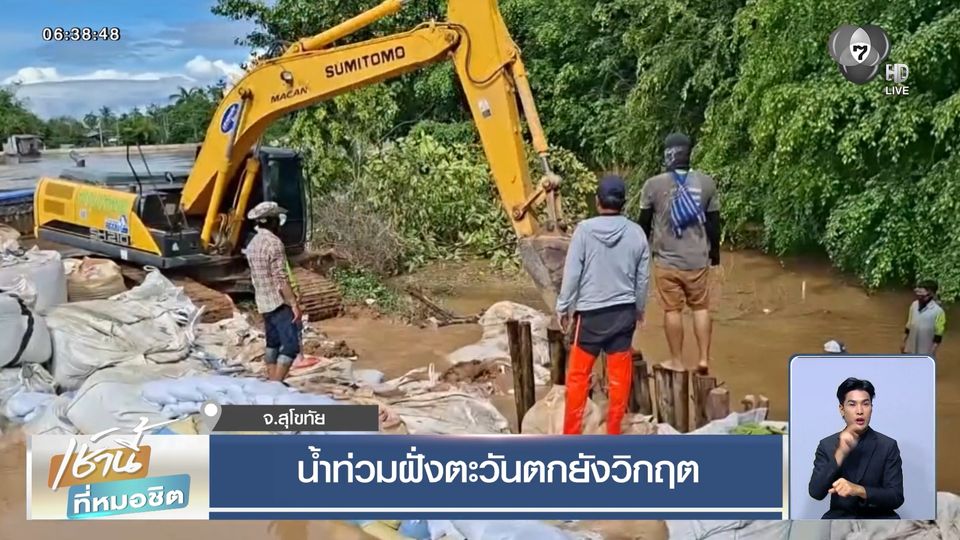 เจ้าหน้าที่ อบต.ปากแคว อำเภอเมือง จังหวัดสุโขทัยต้องเร่งวางกระสอบทรายเพิ่มเสริมแนวป้องกันให้แข็งแรงมากขึ้นเพื่อป้องกันน้ำท่วม หลังจากน้ำในแม่น้ำยมเพิ่มสูง เนื่องจากมีฝนตกหนักหลายพื้นที่ในจังหวัดสุโขทัย และพื้นที่ต้นน้ำอย่าง จังหวัดแพร่