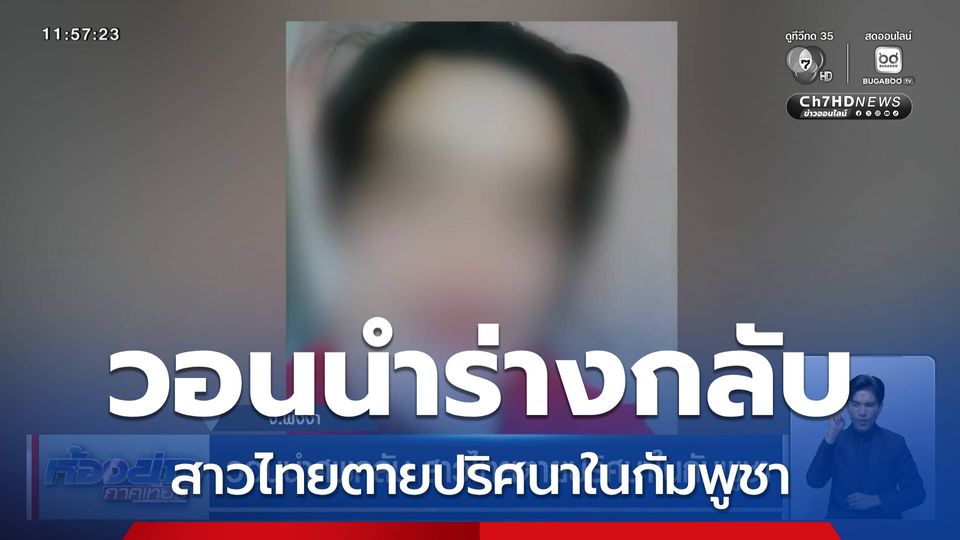 ห้องข่าวภาคเที่ยง - เป็นข่าวเศร้าพบหญิงไทยเสียชีวิตที่กัมพูชาเป็นคนที่ 4 หลังจากแม่ทราบข่าวหลั่งน้ำตา วอนทางการไทยช่วยนำศพลูกกลับบ้าน