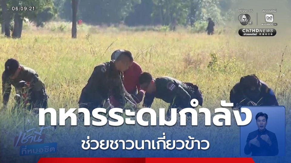 เช้านี้ที่หมอชิต - ทหารกองกำลังบูรพา คุ้มครองรักษาความปลอดภัยให้กับชาวนาที่มีพื้นที่ติดชายแดนไทย-กัมพูชา หลังเกิดเหตุการณ์ยิงตอบโต้กันเมื่อวันที่ 12 พฤศจิกายน ทำให้ชาวนาไม่กล้าเข้าพื้นที่ และไม่เพียงแค่นั้น ทหารช่วยชาวนาเกี่ยวข้าวอีกด้วย