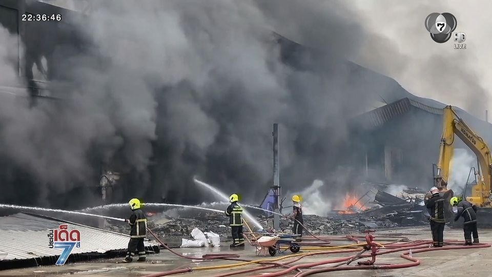 ประเด็นเด็ด 7 สี - โกดังสินค้านำเข้าจากจีน ที่จังหวัดสมุทรสาคร ซึ่งเกิดเพลิงไหม้ตั้งแต่บ่ายวานนี้ ไหม้ข้ามวันข้ามคืน แล้วช่วงเย็นวันนี้ ไฟที่ดับมอดแล้วกลับลุกท่วมขึ้นมา จนล่าสุด เจ้าหน้าที่กู้ภัยยังต้องช่วยกันดับเพลิง
