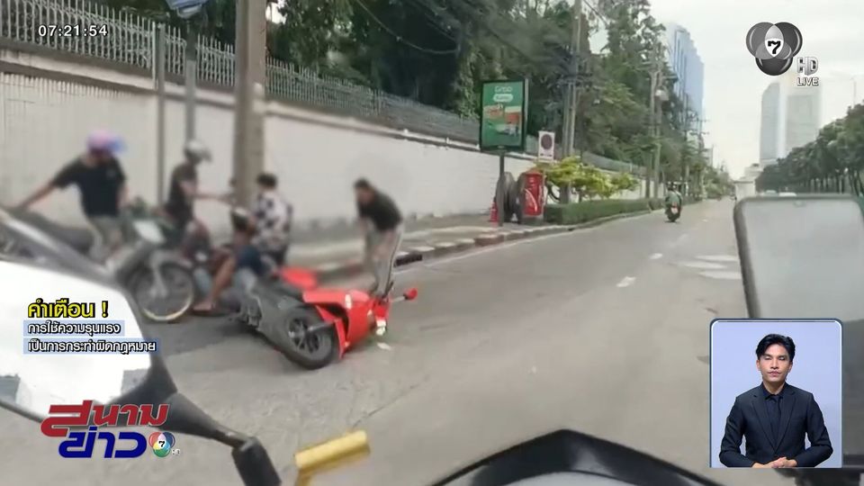 สนามข่าว 7 สี - วานนี้ ผู้ใช้รถใช้ถนน มุ่งหน้าแยกเหม่งจ๋าย อาจตกใจกับกลุ่มวัยรุ่น 4 คน ที่พากันรุมกระทืบชายคู่กรณีไม่ยั้ง จะเกิดอะไรขึ้นต่อ ไปชมคลิปนี้