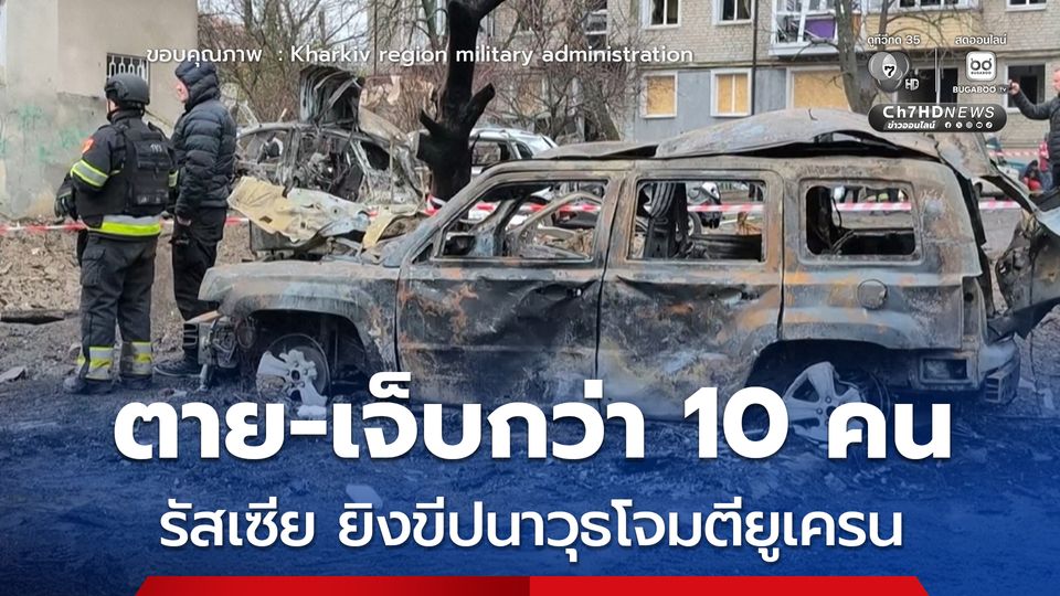 กองทัพรัสเซีย ยิงขีปนาวุธโจมตีใส่ภูมิภาคคาร์คิฟ ประเทศยูเครน ส่งผลให้อาคารที่พักอาศัย-รถยนต์หลายคันพังเสียหาย และยังสังหารผู้คนไป 3 ชีวิต และมีผู้บาดเจ็บอีก 10 คน