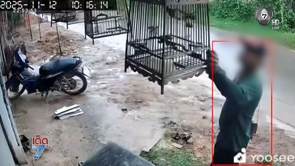 ภาพกล้องวงจรปิดชัดสุด ๆ ชายสวมเสื้อแขนยาว สวมหมวกแก๊ปสีดำ เดินมาส่องนกกรงหัวจุกที่เจ้าของแขวนโชว์ไว้หน้าบ้าน ที่อำเภอกุดจับ จังหวัดอุดรธานี จู่ ๆ หัวขโมยก็คว้าเอานกกรงหัวจุก ที่เป็นตัวท็อปซะด้วยชื่อว่า "เจ้าบุญรอด" หิ้วไปทั้งกรง แล้วขี่รถจักรยานยนต์ซิ่งหนี