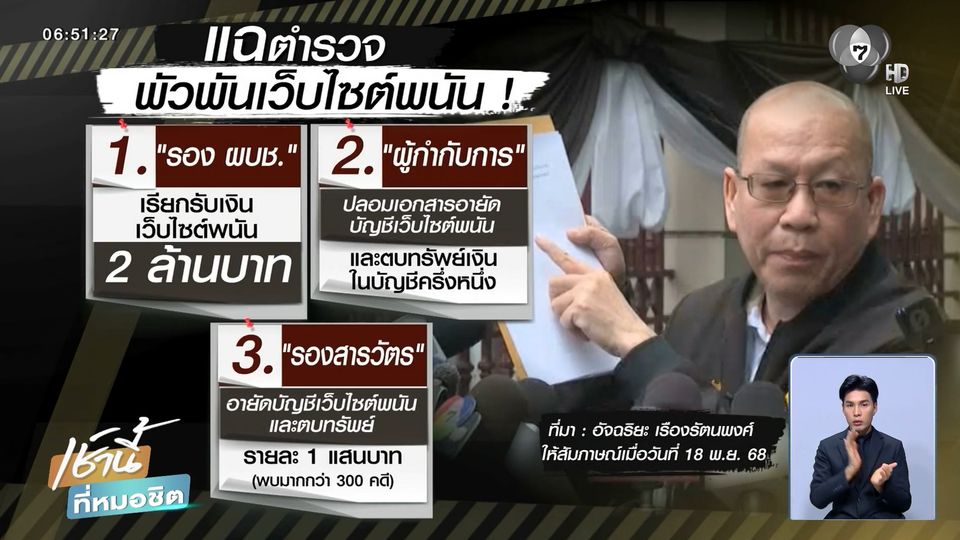 เมื่อวานก็ไปที่สำนักงานตำรวจแห่งชาติ ขอให้ "ผบ.ตร." ตรวจสอบ 3 ประเด็นที่เกี่ยวข้องกับตำรวจเรียกรับเงิน และตบทรัพย์เว็บไซต์พนันออนไลน์ โดยอ้างว่ามีตำรวจในหลายพื้นที่ หลายสังกัด กระทำความผิด