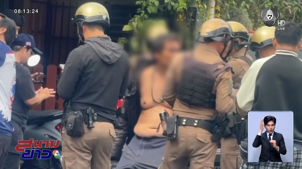 เจ้าหน้าที่ใช้เวลาประมาณ 30 นาที สามารถคุมชายคลุ้มคลั่งไว้ได้ เหตุเกิดเวลา 11.00 น. เมื่อวานนี้