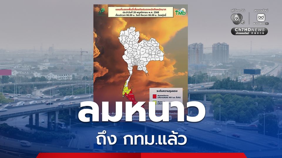 วันนี้ (20 พ.ย.68) ประกาศกรมอุตุนิยมวิทยา ฉบับที่ 11 ภาคเหนือและภาคตะวันออกเฉียงเหนือมีอากาศเย็นถึงหนาวกับมีลมแรง อุณหภูมิจะลดลง 1-2 องศาเซลเซียส ส่วนภาคกลาง รวมทั้งกรุงเทพมหานครและปริมณฑล และภาคตะวันออก มีอากาศเย็นกับมีลมแรง ส่วนยอดดอยและยอดภูมีอากาศหนาวถึงหนาวจัด ภาคใต้มีฝนตกหนักหลายพื้นที่และมีฝนตกหนักมากบางแห่งในช่วงวันที่ 20-23 พ.ย. 68 คลื่นลมบริเวณอ่าวไทยและทะเลอันดามันจะมีกำลังค่อนข้างแรง บริเวณที่มีฝนฟ้าคะนองคลื่นสูงมากกว่า 3 เมตร ระวังอันตรายจากฝนตกหนักถึงหนักมากและฝนที่ตกสะสม ซึ่งอาจทำให้เกิดน้ำท่วมฉับพลันและน้ำป่าไหลหลาก เรือเล็กควรงดออกจากฝั่ง