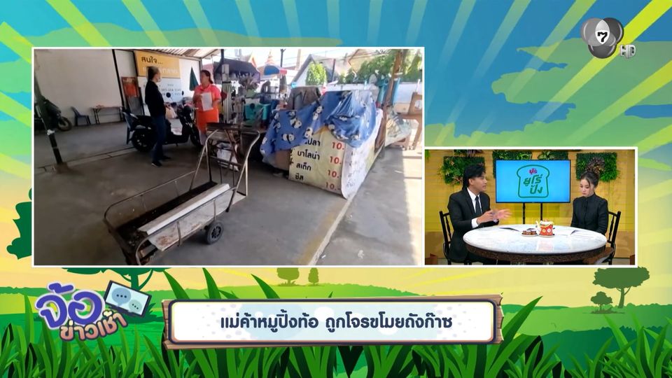 จ้อข่าวเช้า - แม่ค้าหมูปิ้งท้อ ถูกโจรขโมยถังก๊าซ