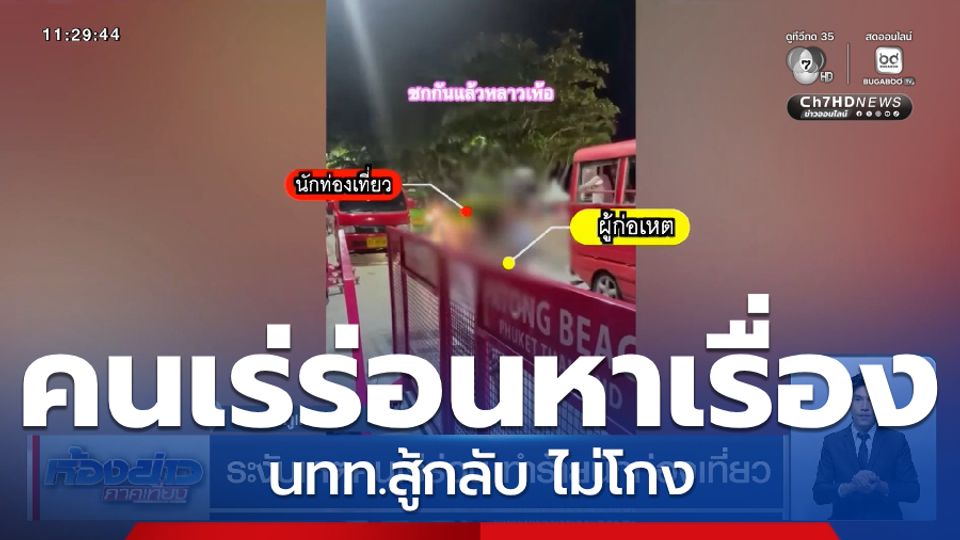 ห้องข่าวภาคเที่ยง - ตำรวจสภ.ป่าตอง เข้าระงับเหตุ นักท่องเที่ยวชาวต่างชาติ ที่ป่าตอง จังหวัดภูเก็ต ถูกชายเร่ร่อน เข้ามาหาเรื่อง จนชกต่อยกัน และย้ำมาตรการความปลอดภัย ไม่ให้เสียภาพลักษณ์การท่องเที่ยว