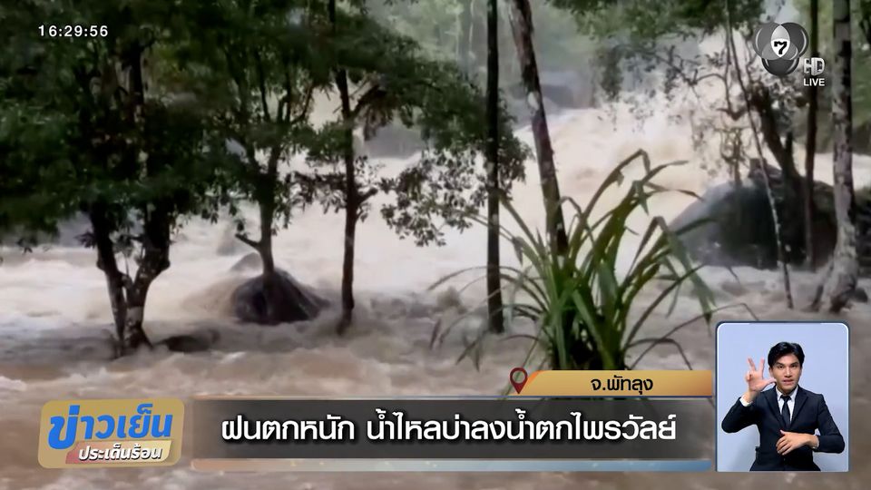 ฝนตกหนัก น้ำไหลบ่าลงน้ำตกไพรวัลย์ จ.พัทลุง