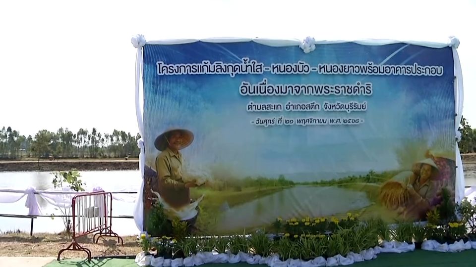 พลอากาศเอก จอม รุ่งสว่าง องคมนตรี รองประธานกรรมการติดตามและขับเคลื่อนโครงการอันเนื่องมาจากพระราชดำริ พร้อมด้วยคณะฯ เดินทางไปยัง "โครงการปรับปรุงและขุดลอกหน้าฝายบ้านหนองเรือ และโครงการก่อสร้างสถานีสูบน้ำด้วยไฟฟ้าพร้อมระบบส่งน้ำบ้านหนองเรือ" อำเภอบ้านใหม่ไชยพจน์ จังหวัดบุรีรัมย์ ซึ่งพระบาทสมเด็จพระมหาภูมิพลอดุลยเดชมหาราช บรมนาถบพิตร ทรงรับเป็นโครงการอันเนื่องมาจากพระราชดำริ เมื่อวันที่ 13 ธันวาคม 2555 เพื่อช่วยเหลือราษฎรที่ขาดแคลนน้ำอุปโภคบริโภคและทำการเกษตร โดยสำนักงาน กปร. ร่วมกับกรมชลประทาน สนองพระราชดำริ แล้วเสร็จเมื่อปี 2559 ปัจจุบันองค์การบริหารส่วนตำบลกู่สวนแตง เป็นผู้รับผิดชอบดูแลรักษาโครงการ สามารถส่งน้ำสนับสนุนการอุปโภคบริโภคแก่ราษฎรตำบลกู่สวนแตง 380 ครัวเรือน ราษฎร 1,180 คน และพื้นที่การเกษตร 3,000 ไร่ ราษฎรได้ร่วมจัดตั้งกลุ่มผู้ใช้น้ำ เพื่อช่วยบริหารจัดการน้ำในพื้นที่ 78 คน