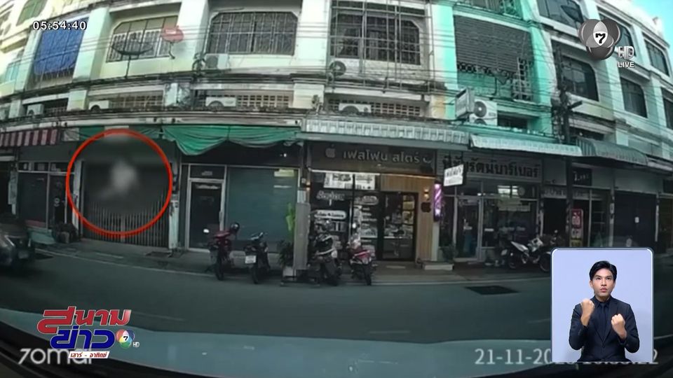 กล้องหน้ารถยนต์บันทึกภาพนาทีชายคนหนึ่งตกลงมาจากตึก 3 ชั้น ภายในซอยประชาสันติ ตำบลหมากแข้ง อำเภอเมือง จังหวัดอุดรธานี ช่วง 16.53 น. เมื่อวานนี้