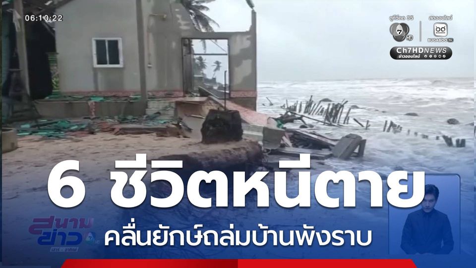 สนามข่าวเสาร์-อาทิตย์ - สถานการณ์อุทกภัยในพื้นที่ภาคใต้ หลังมีฝนตกต่อเนื่องที่จังหวัดนครศรีธรรมราช คลื่นยักษ์ถล่มบ้านพังราบ 6 ชีวิตหนีตาย