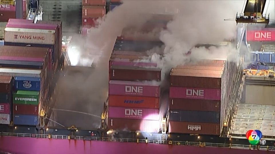 เกิดเหตุเพลิงไหม้เรือขนส่งสินค้าบริเวณท่าเรือซานเปโดร ในนครลอสแอนเจลิส ส่งผลให้เกิดระเบิดตามมา ลูกเรือต้องเร่งอพยพ