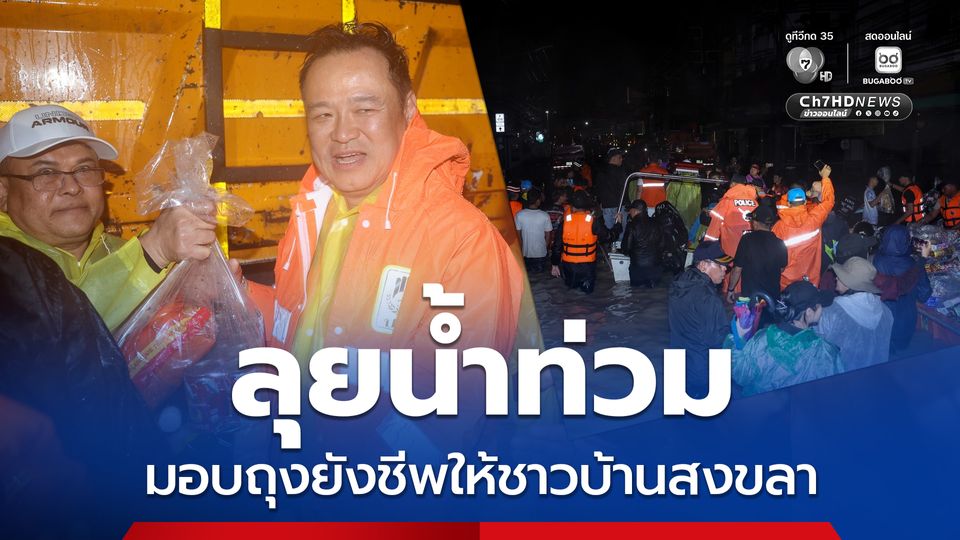 นายกฯ อนุทิน ลุยน้ำท่วมมอบถุงยังชีพให้ประชาชนสงขลา ระหว่างติดตามสถานการณ์น้ำท่วม