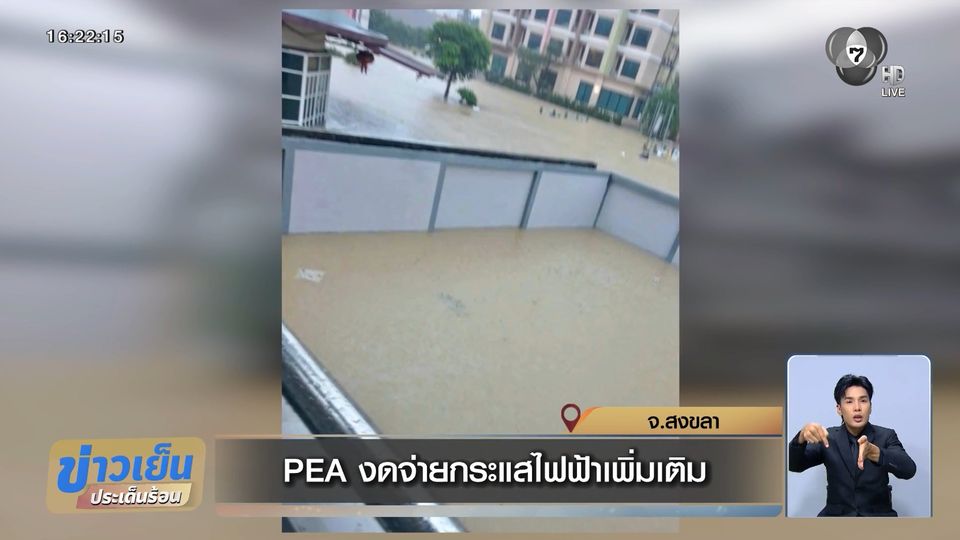 เสียงหม้อแปลงไฟฟ้าระเบิดยังมีให้ได้ยินกันตั้งแต่เช้า หลังมีฝนตกลงมาอย่างหนักต่อเนื่องตลอดเกือบทั้งวัน จนระดับน้ำค่อย ๆ สูงขึ้นเรื่อย ๆ ถึงขนาดที่ การไฟฟ้าส่วนภูมิภาค (PEA) ต้องประกาศงดจ่ายกระแสไฟฟ้าเพิ่มเติมในพื้นที่ที่ได้รับผลกระทบน้ำท่วมสูง เนื่องจาก "สถานีไฟฟ้าหาดใหญ่ 5" มีน้ำท่วมเข้าไปจนถึงเครื่องปั่นกระแสไฟฟ้า ส่งผลให้บริเวณถนนนิพัทธ์อุทิศ 1, 2, 3 ถนนศรีภูวนารถ และ ถนนราษฎร์ยินดี ไม่สามารถใช้ไฟฟ้าได้ชั่วคราว