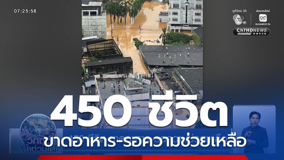 สนามข่าว 7 สี - ตอนนี้ที่คอนโดมิเนียมกลางหาดใหญ่ มีผู้ประสบภัย 450 ชีวิต กำลังรอความช่วยเหลืออยู่ ออกไปไหนไม่ได้ เพราะน้ำยังสูงกว่า 2.5 เมตร เมื่อวานนี้ต้องแบกคนป่วยขึ้นลง 25 ชั้น เพื่อไปรอเฮลิคอปเตอร์มารับที่ดาดฟ้า แต่สุดท้ายไม่มีใครมา