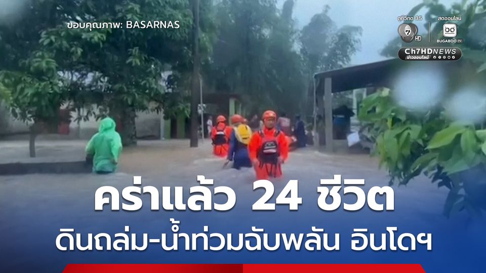 เหตุดินถล่ม-น้ำท่วมฉับพลัน บนเกาะสุมาตรา ประเทศอินโดนีเซีย ยอดผู้เสียชีวิตเพิ่มขึ้นเป็นอย่างน้อย 24 คนแล้ว และยังมีผู้สูญหายอีกอย่างน้อย 5 คน